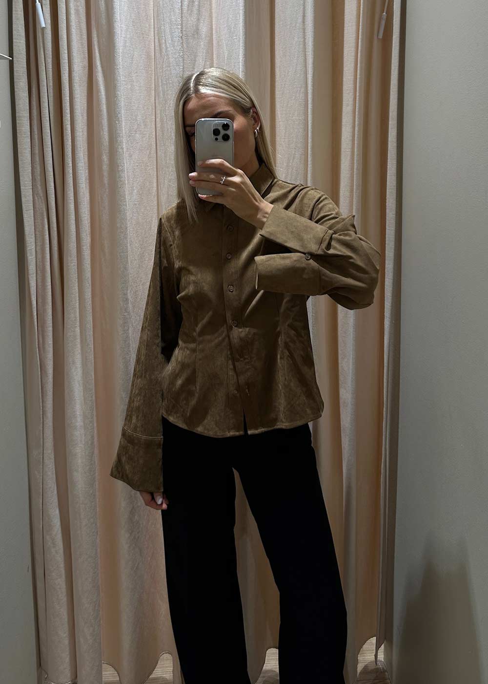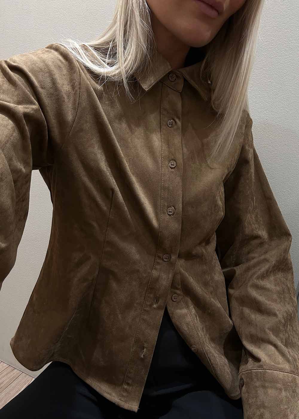 Cămașă roz din piele întoarsă Faux Suede - Maro