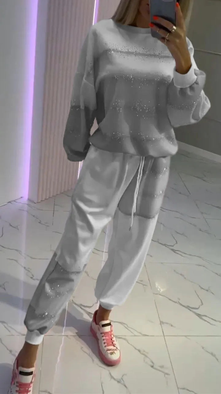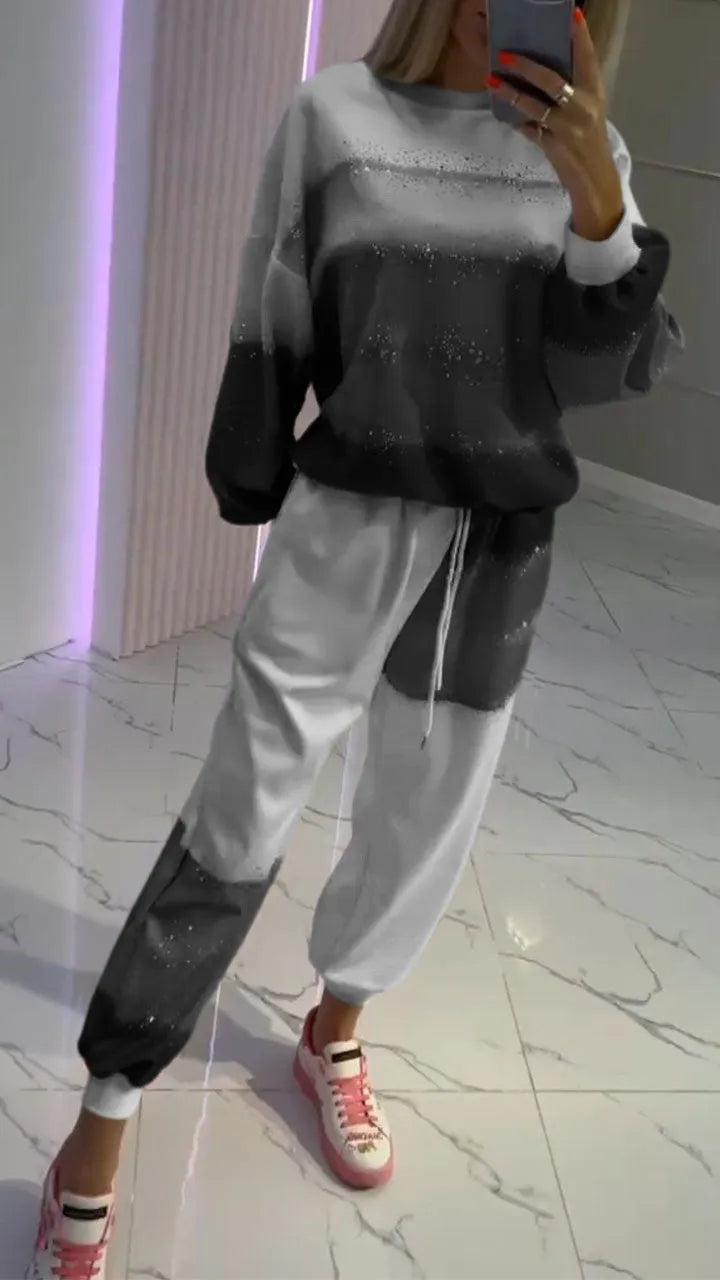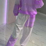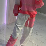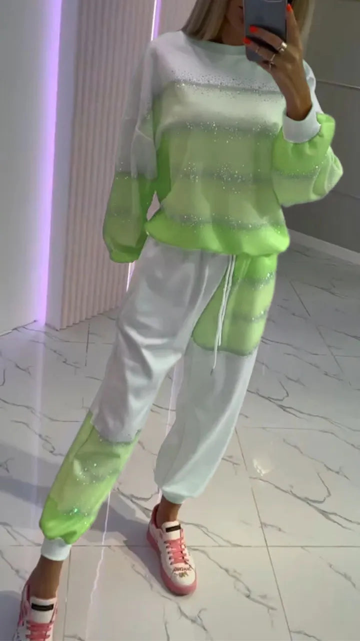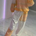 Aurora™ Set casual cu top patchwork ștanțat auriu + pantaloni cu șnur