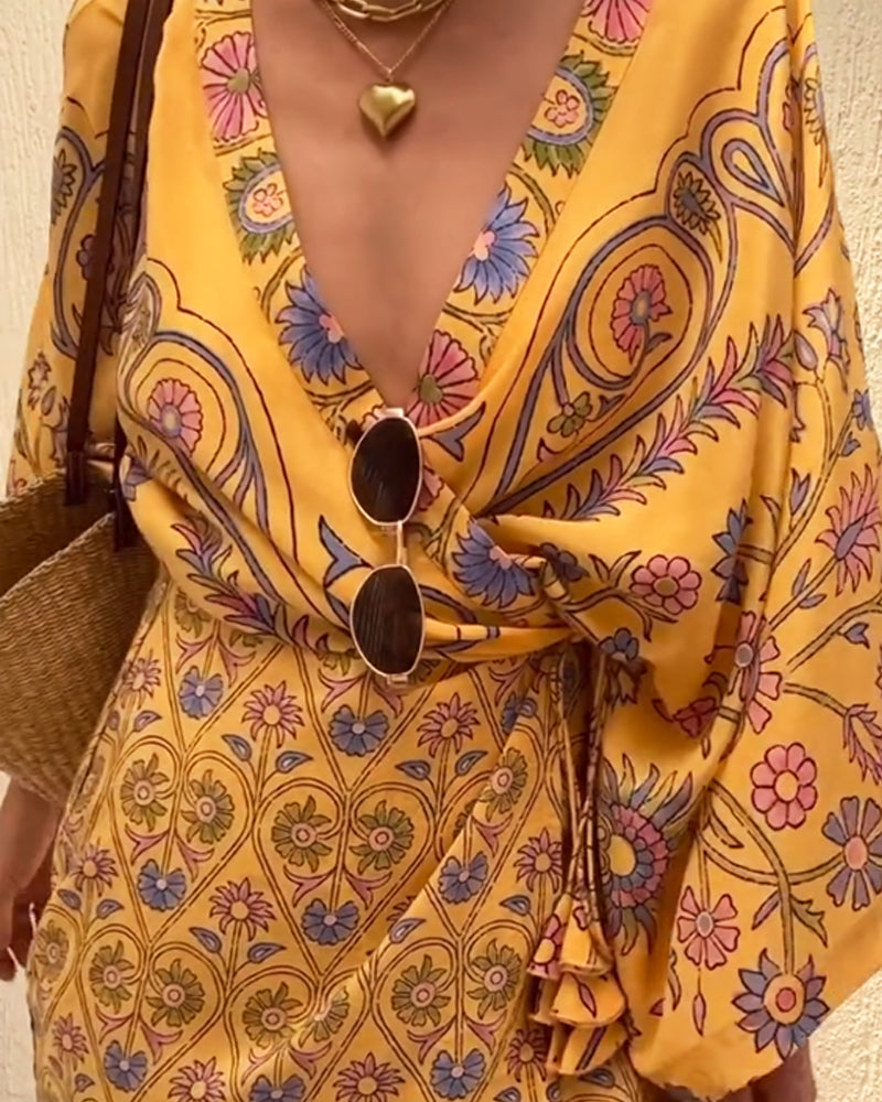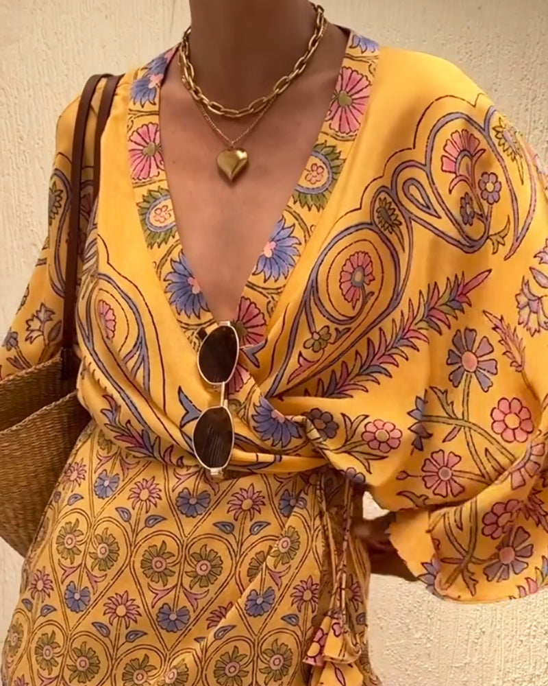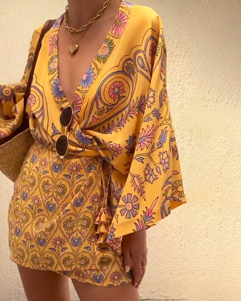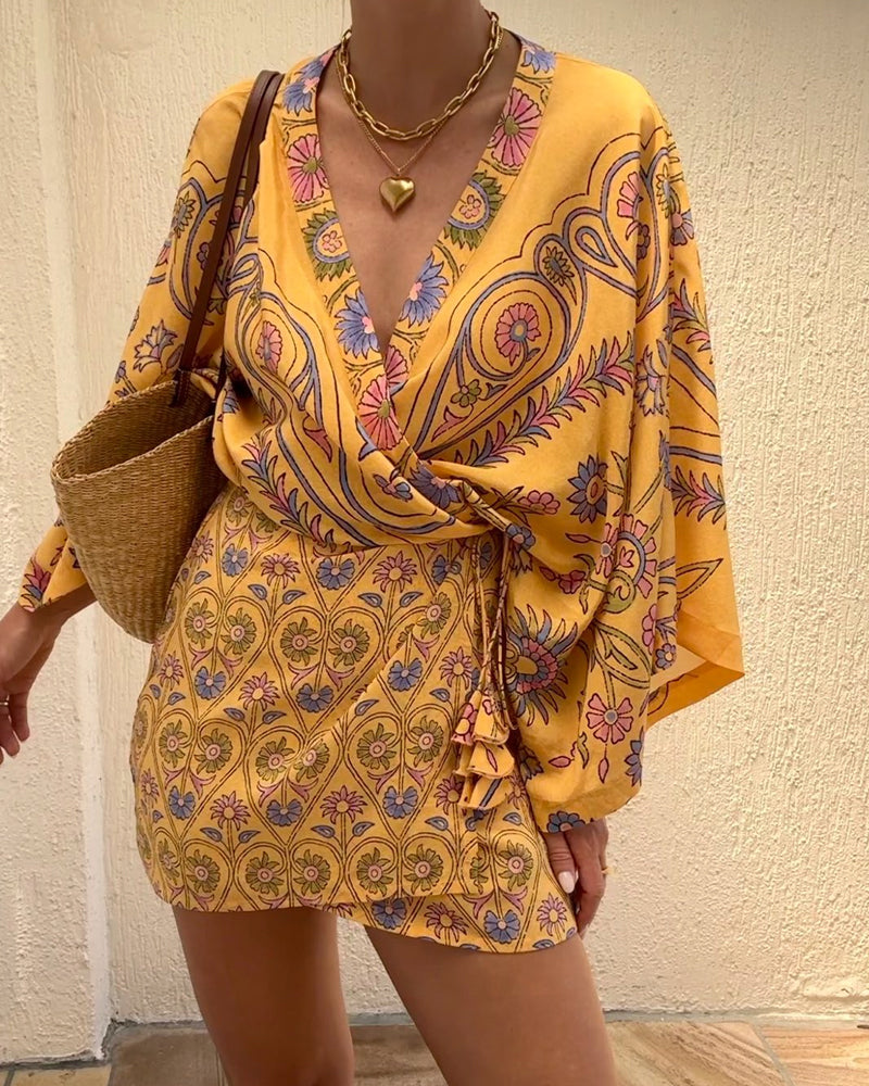 Lyca - Loose Wrap V-Neck Mini Dress
